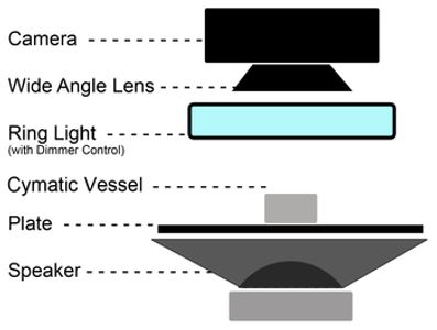 This figure displays the necessary setup & equipment for capturing cymatic images.
